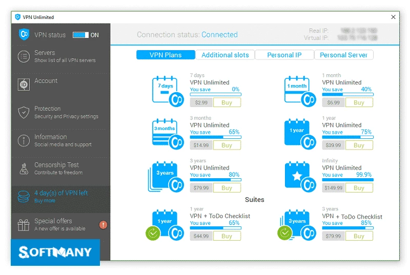 VPN Unlimited, sviluppato da KeepSolid Inc., è uno strumento pratico e ricco di funzionalità per offrire soluzioni di sicurezza informatica. Le tecnologie all'avanguardia e l'impegno del team dedicato di KeepSolid offrono una protezione infallibile per i tuoi dati online. È disponibile sia in versione gratuita che a pagamento.