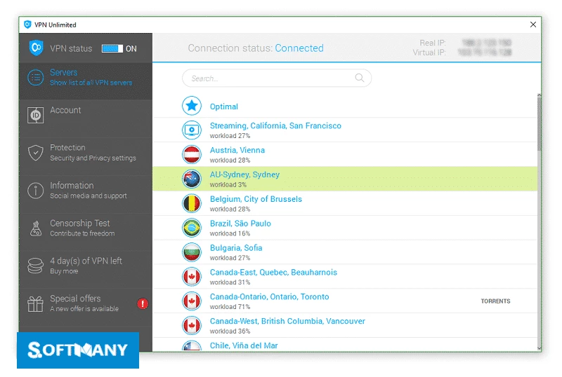 L'innovativa app offre un'esclusiva scheda Streaming disponibile nella finestra di dialogo dei server, che offre diversi server correlati alle librerie multimediali in streaming. Permette inoltre di creare un elenco dei server preferiti e una whitelist per specificare le reti che si desidera aggiungere e quelle che non si desidera utilizzare tramite la VPN .
